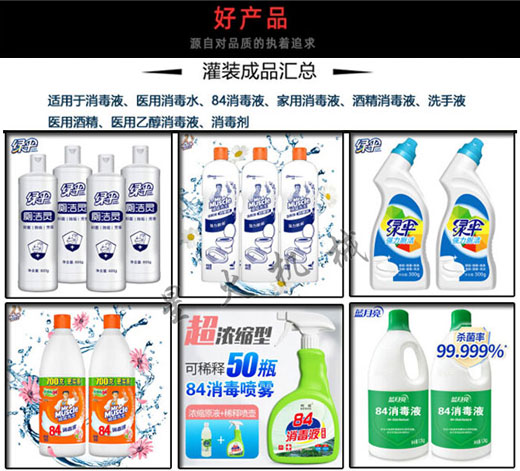 河南耐酸堿液體灌裝機(jī)廠家的設(shè)備灌裝樣品展示