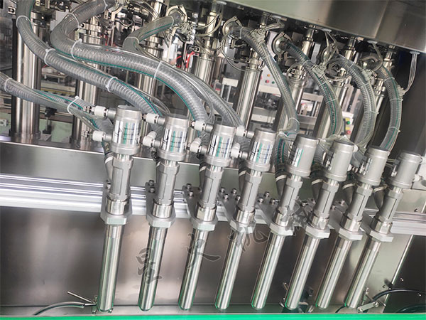 如今的全自動液體定量灌裝機設備實現了自動化。智能化、功能化運作模式,全自動液體定量灌裝機原理是由傳動機械帶動,使各方面能協調分工,真正達到聯動的效果。當瓶子到達灌裝部位時,前面的瓶子灌裝完畢后,又自動放行,讓后面的瓶子補空位,實現無瓶不灌裝。灌裝好之后,當瓶子離開時,灌裝機頭停止工作,軌道部分工作,擋瓶器放行。這就是全自動液體定量灌裝機復雜又簡單的作業原理。全自動液體定量灌裝機并具有設備自我保護的特性。